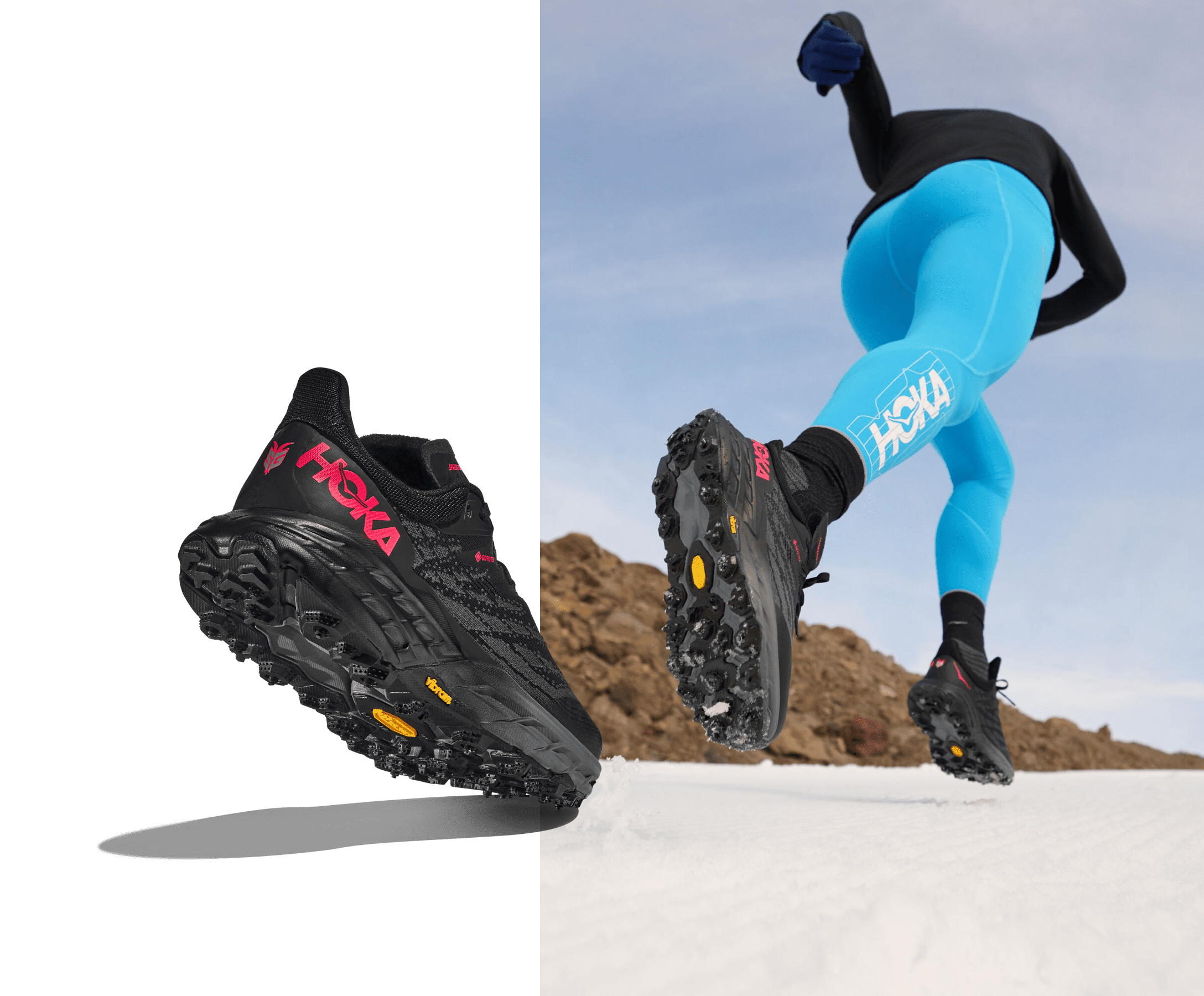 Built off the Speedgoat 5 GTX’s blueprints, this winterized spinoff has been upgraded with enhanced traction for inclement weather. Enlisting the same GORE-TEX membrane and Vibram® Megagrip outsole, this weather-ready warrior employs 12 tungsten carbide spikes designed to keep you on your feet and off your backside.